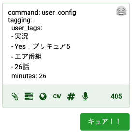 実況用タグを登録するなら、例えば以下のキュア!を送信してください。