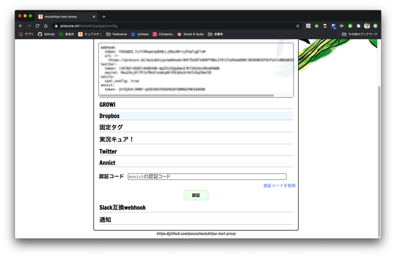https://github.com/pooza/mulukhiya-toot-proxy/wiki/Annict%E5%AF%BE%E5%BF%9C https://annict.com/userland/projects/60